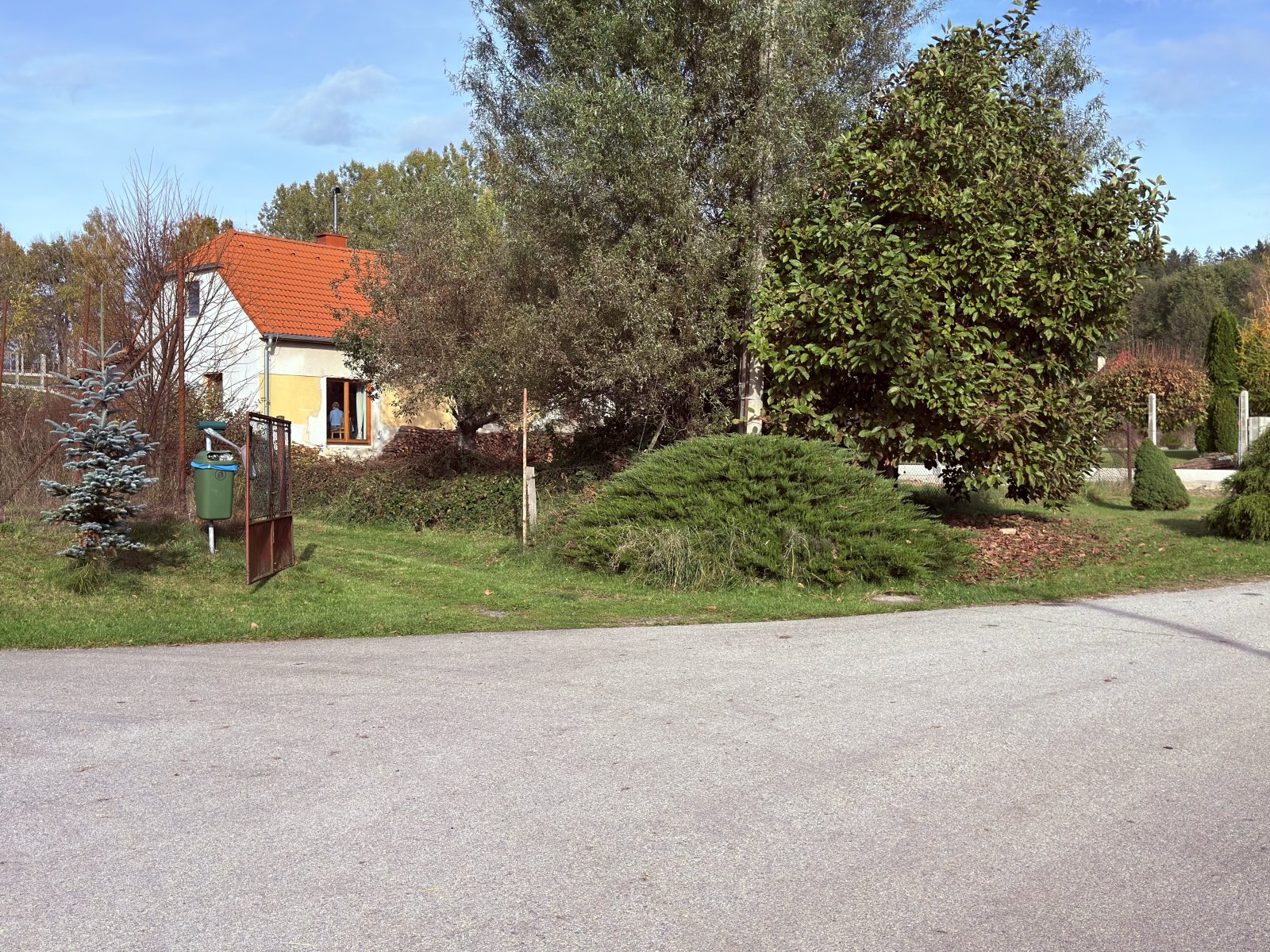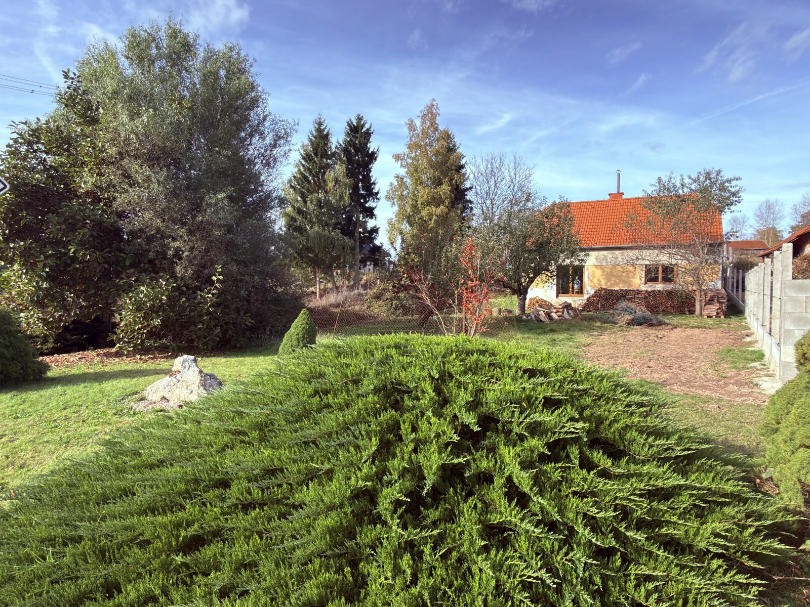 Zahrada je orientována na jižní stranu, jsou zde dvě jabloně s podzimními