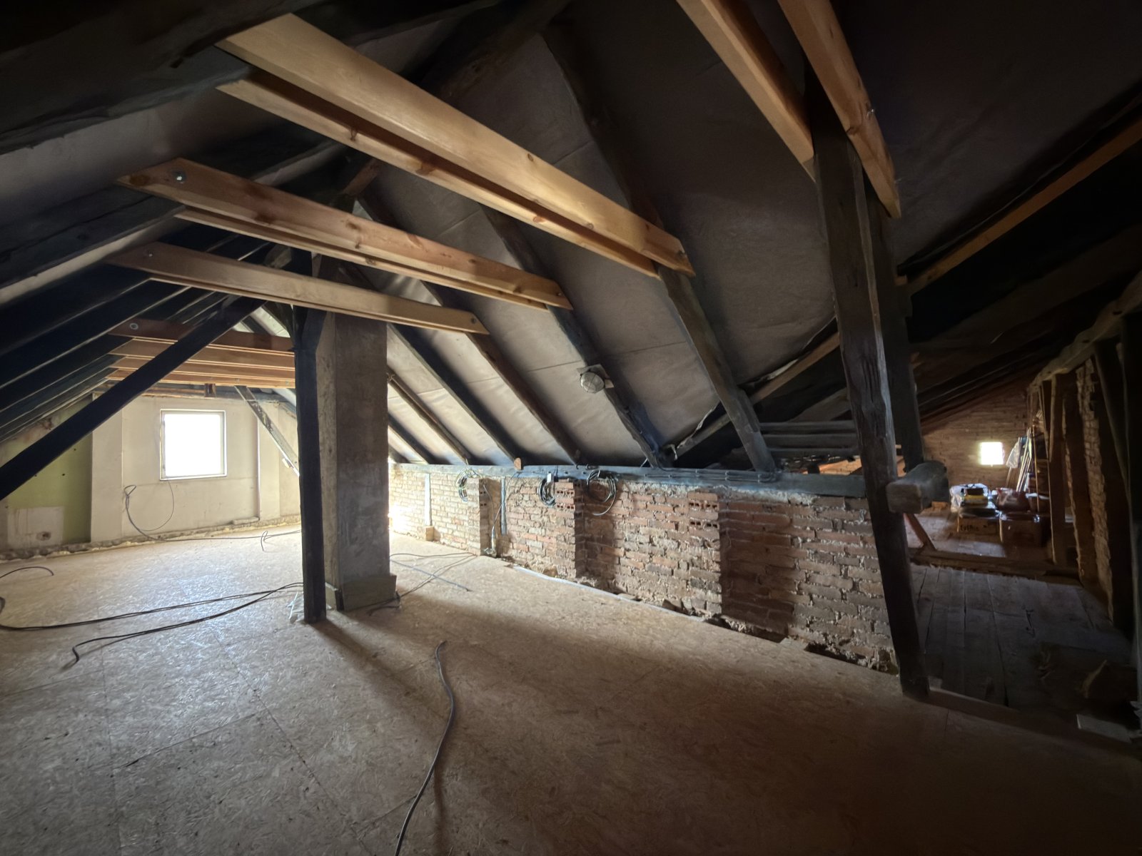 podkroví jsou vyvedené husími krky přípojky pro budoucí zapojení