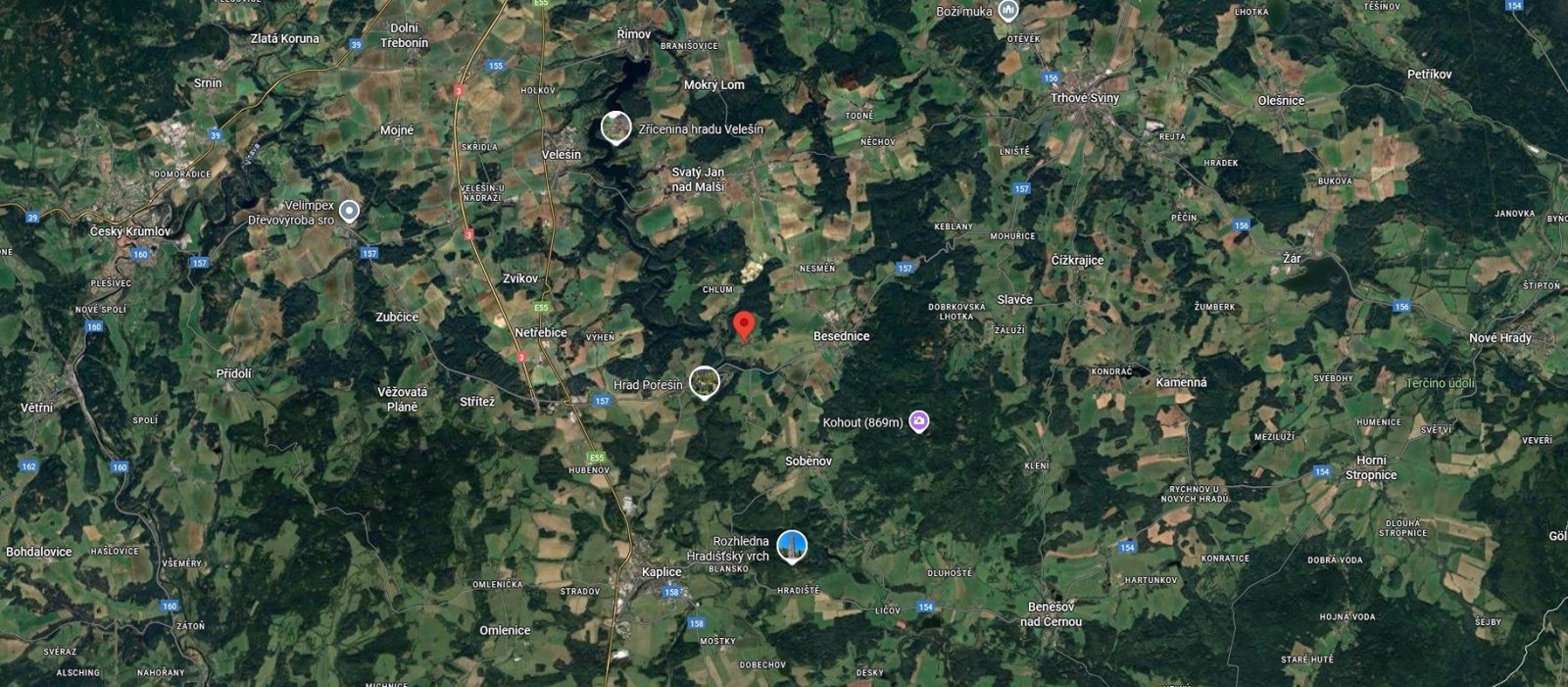 v blízkosti najdete zříceninu hradu Pořešín, rozhlednu Slabošovka či